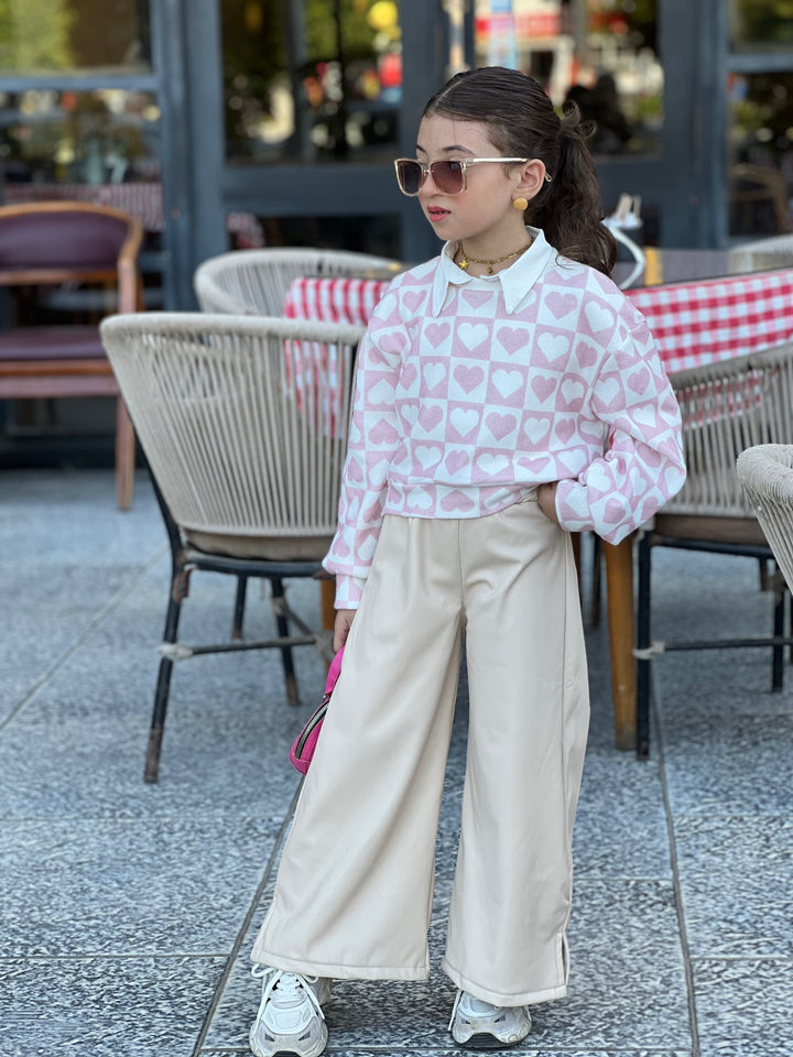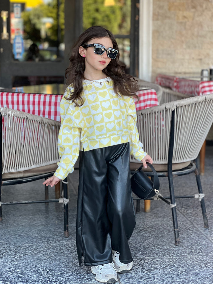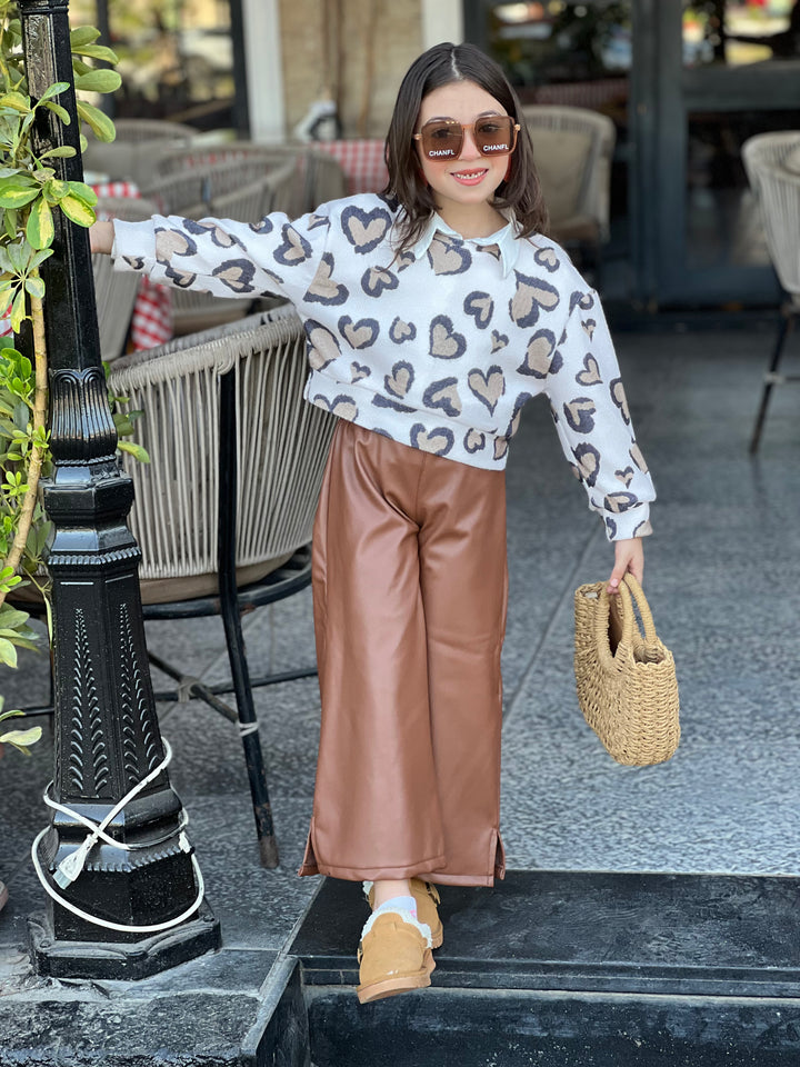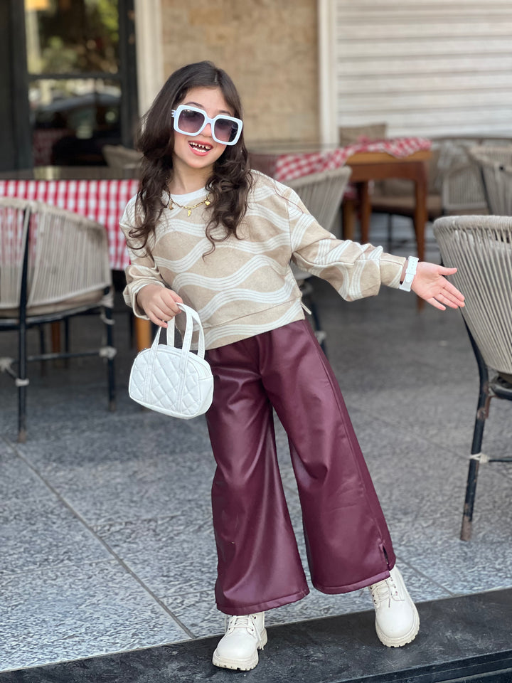 بنطلون بستايل وايد ليج عصري من خامة الجلد الأنيقة، مبطن من الداخل بقطيفة ناعمة عشان يدي دفاية وراحة طول الشتاء