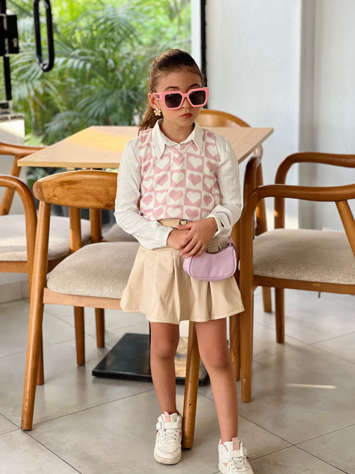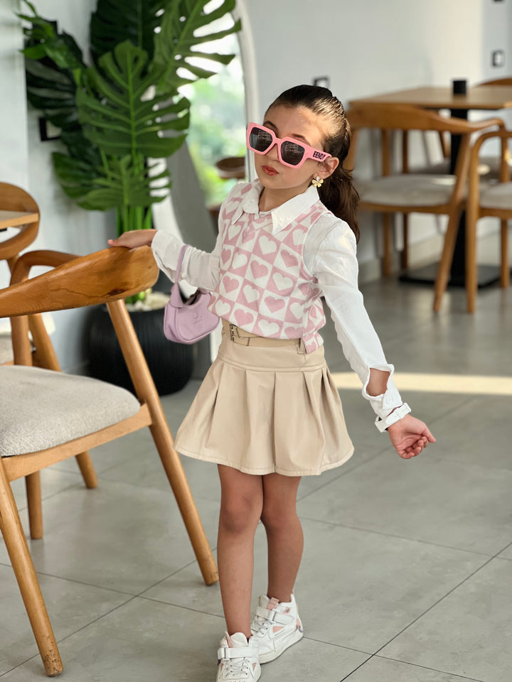 طقم قطعتين أنيق – ڤيست ريب مطبوع + سكيرت جلد مبطنة قطيفة