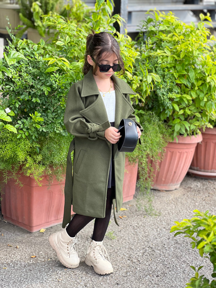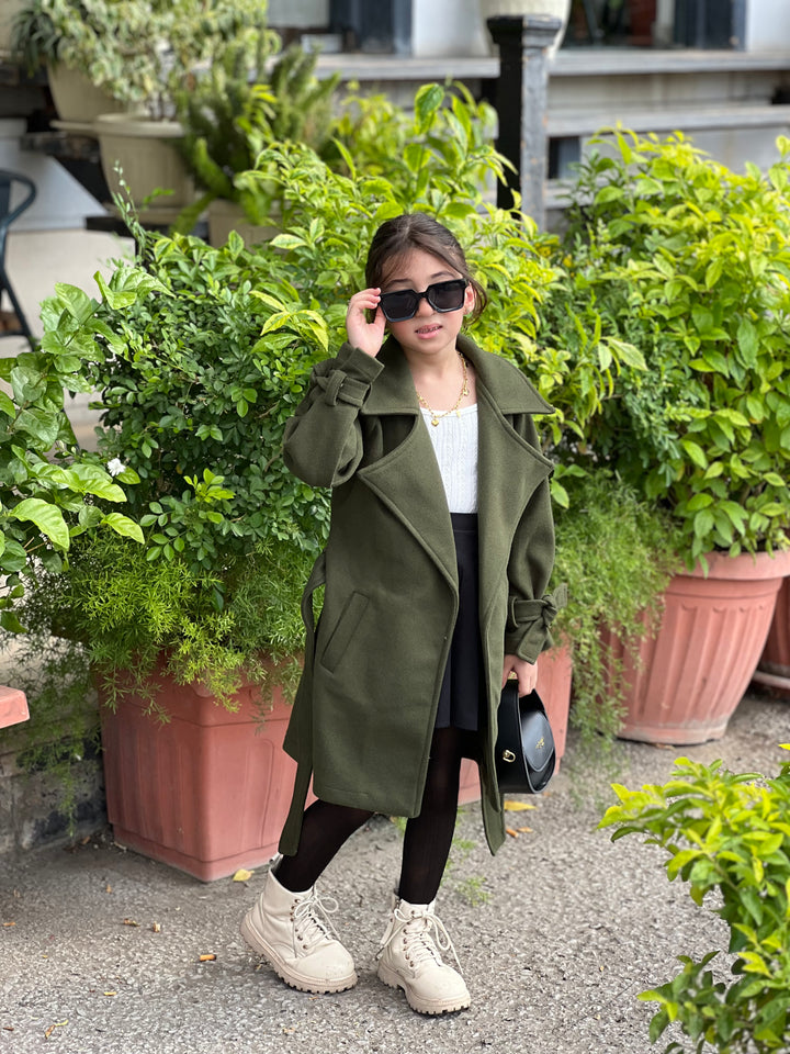 كوت طويل من خامة الجوخ الفاخر، تصميمه بسيط وراقي مع حزام على الوسط يبرز جمال القوام ويضيف لمسة أنثوية شيك
