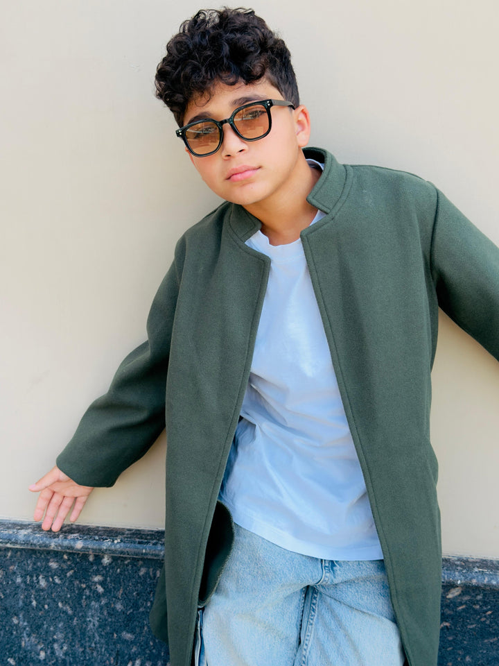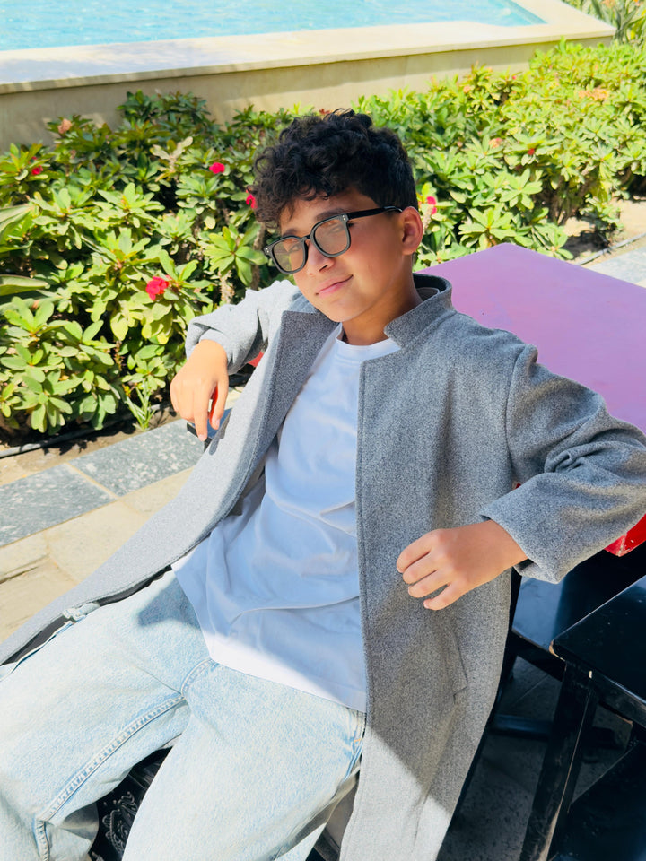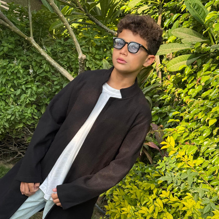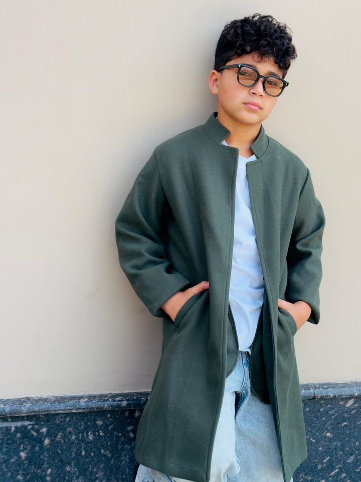 كوت أنيق بخامة جوخ مستورد تقيل، بجودة عالية تدي شكل مرتب وستايل كلاسيك عصري مناسب للولاد.